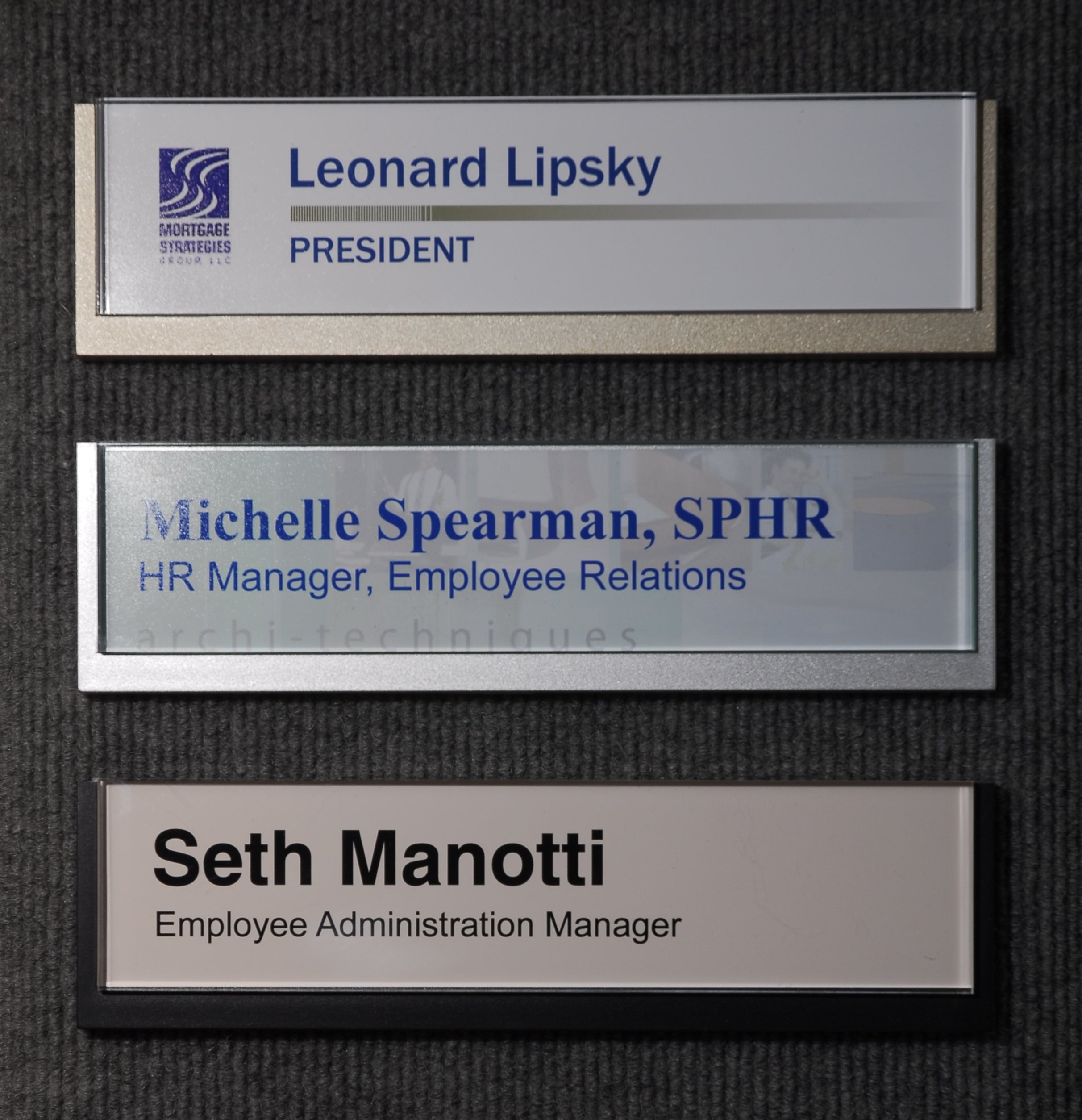 Need a unique sign? We create custom name plates, directories, and wall/door signs. Email us your request!