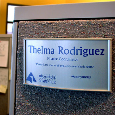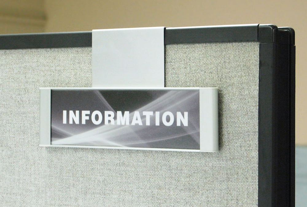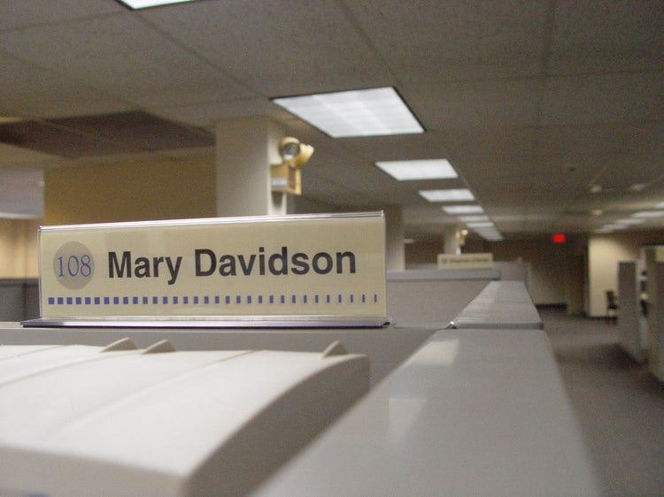 Cubicle Nameplates mounted to the top of your partition walls is the best way to view several office personnel at once from either end of an aisle way. Cubicle X-Ray Vision speaks for itself.